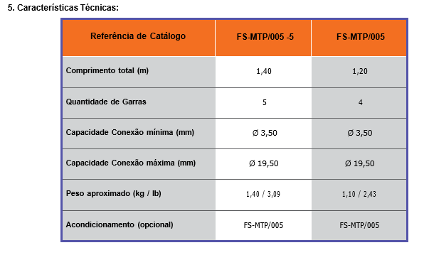 Este bastão é construído com tubo FS Energia Ø25 mm, garras de alumínio e pingadeiras de borracha, delimitando a região de empunhadura.As garras de fixação são conectadas no condutor através de molas de pressão, proporcionando maior rapidez na instalação sem danificar os condutores.A barra de alumínio para interligação das garras, dispõe de um parafuso em sua extremidade inferior para eventual conexão de um cabo para ligação à terra.
